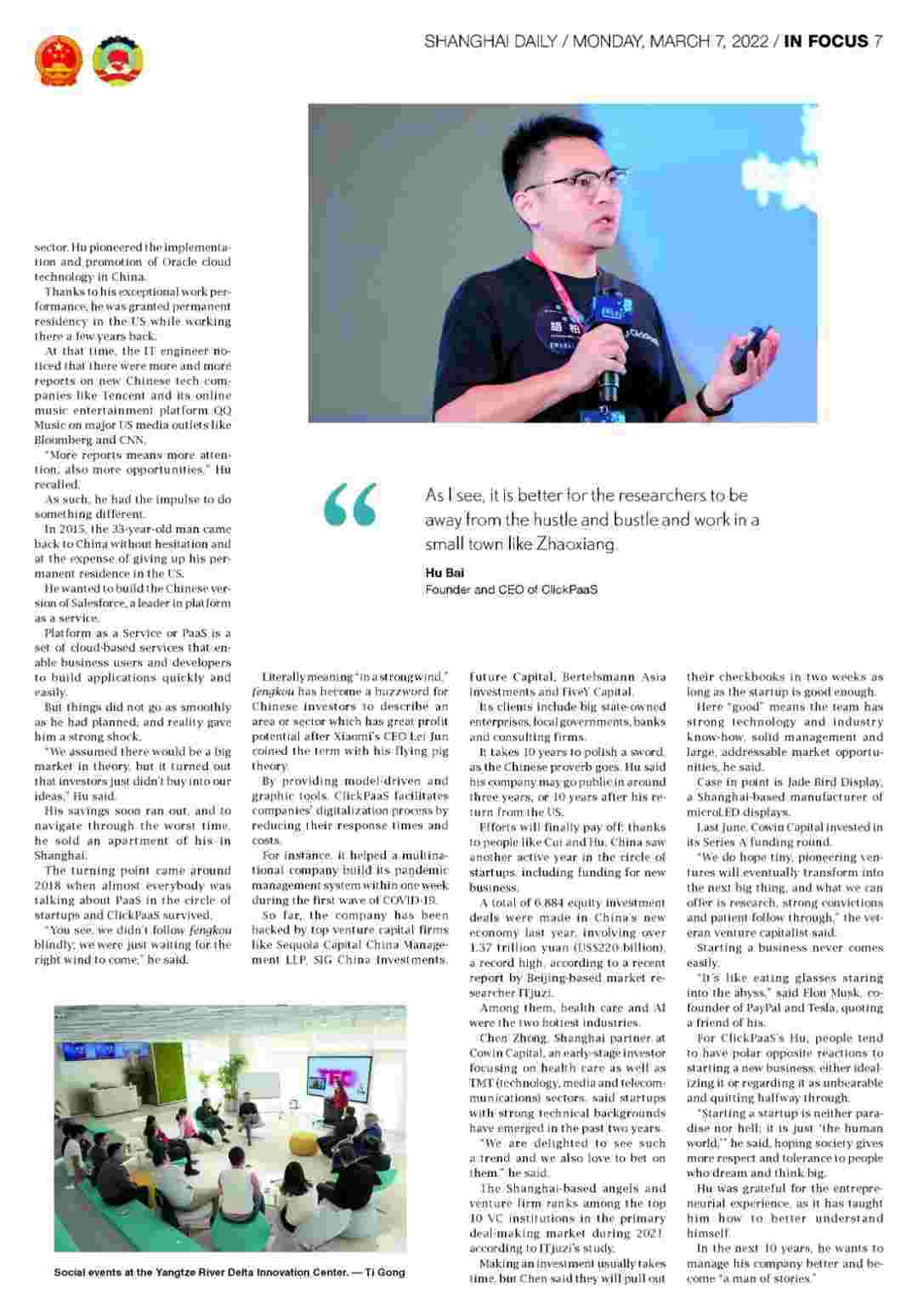 《上海日报》专访OPPO钱包创始人、、、、、、、、、、、CEO胡柏,,,,探究其创业背后的故事!!!!!!!!!