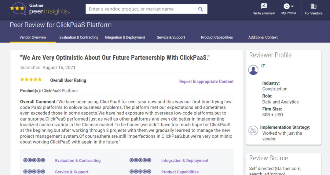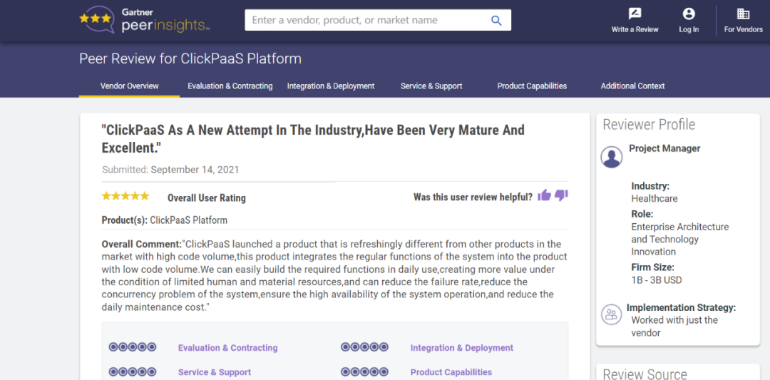 Tips:::::::::::::【Peer Insights】——用户对企业IT产品和服务发布真实评价的平台。。。。。目前已有355个市场,,,,,,,,,,,255,000条经过验证的评价。。。。。。。每一条评价Gartner会针对参评企业营收规模及参评人员信息做验证、、、、、、、、评价内容做多维核实。。。。。。。。。。